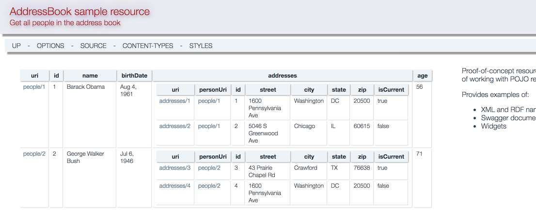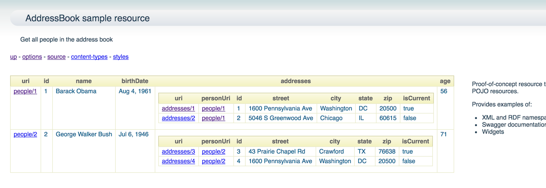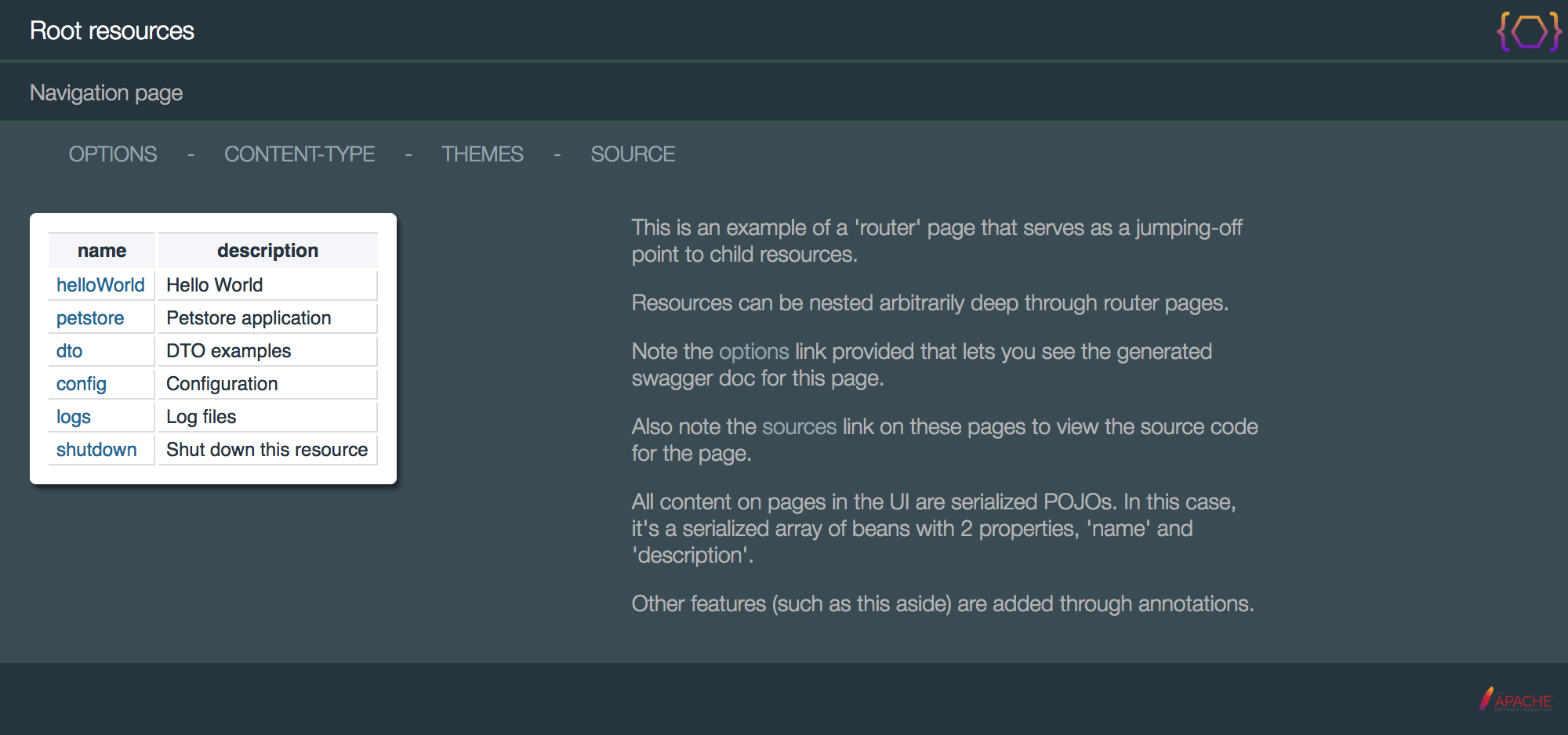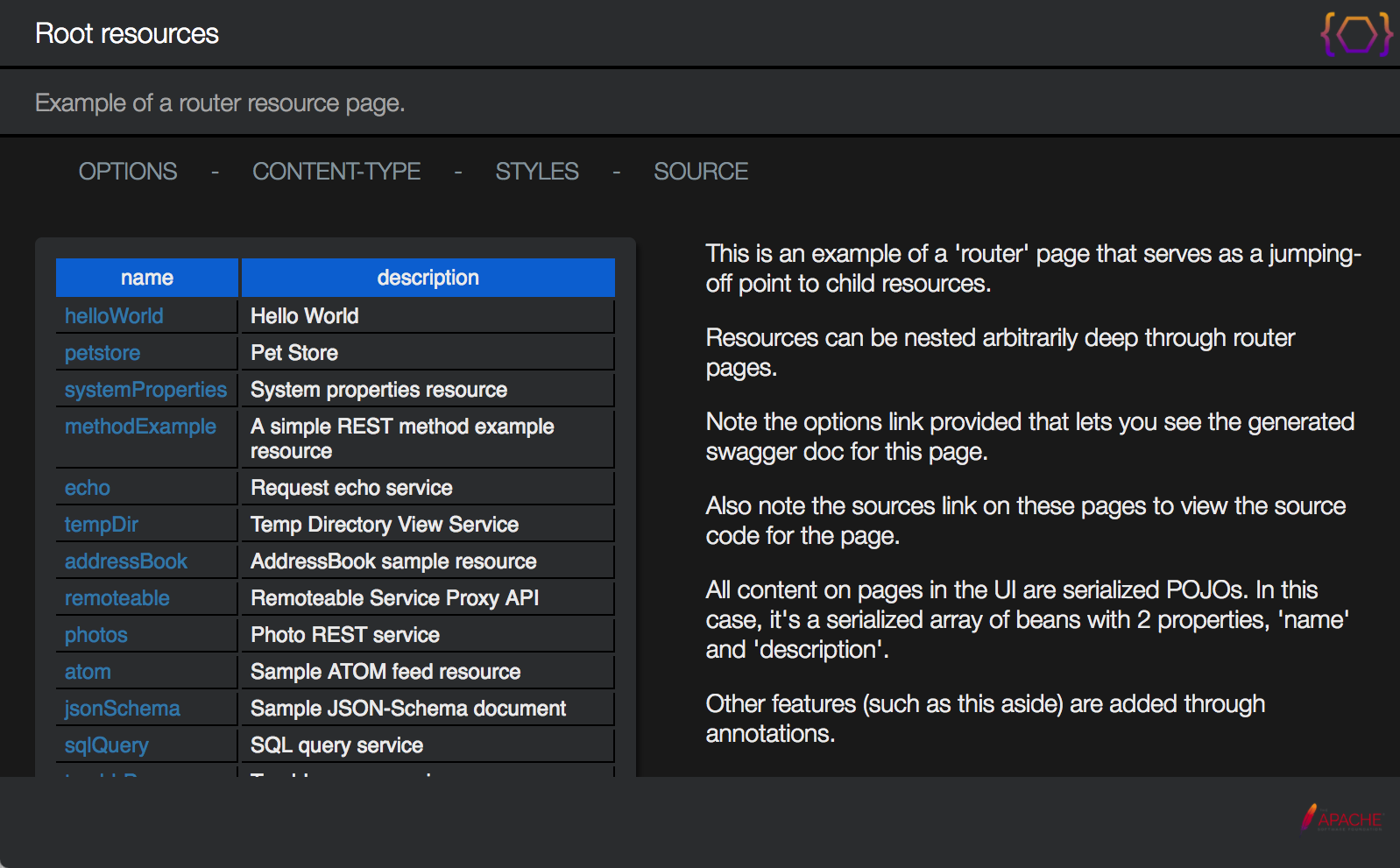 | Juneau REST | juneau-rest-server | A universal REST server API for creating Swagger-based self-documenting REST interfaces using POJOs, simply deployed as one or more top-level servlets in any Servlet 3.1.0+ container. |