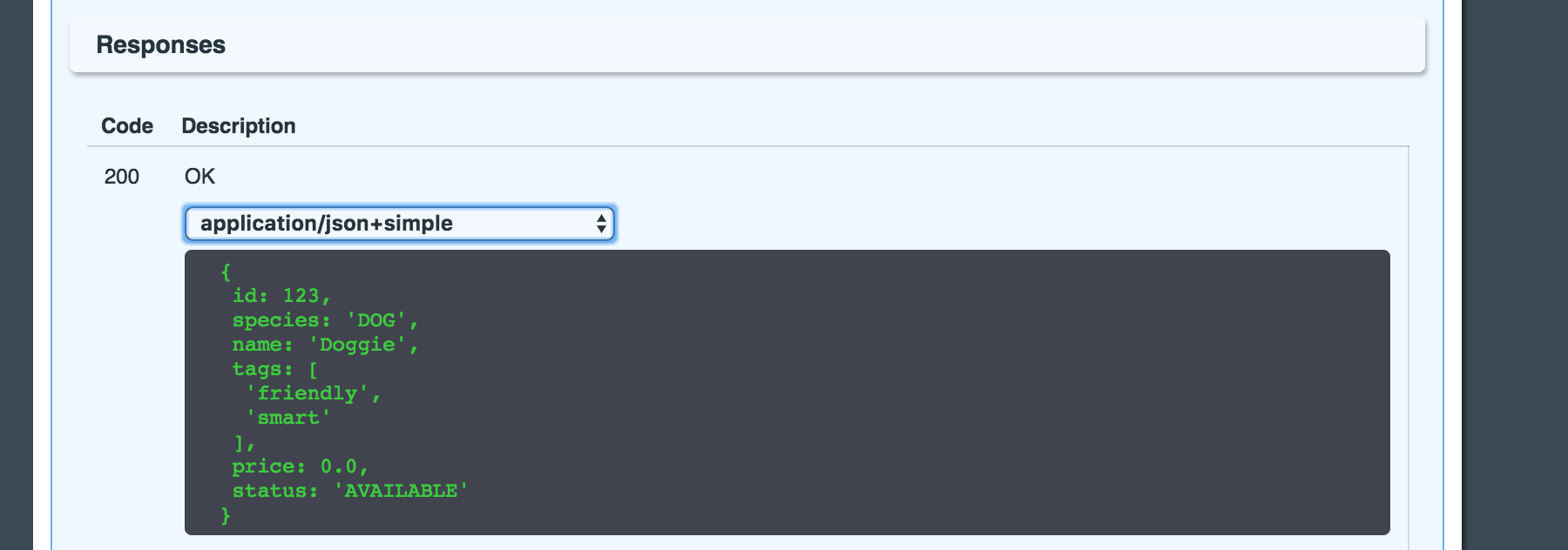 throwables thrown from REST methods and POJOs returned by REST methods to specify non-200 status return codes and descriptions in Swagger documentation.